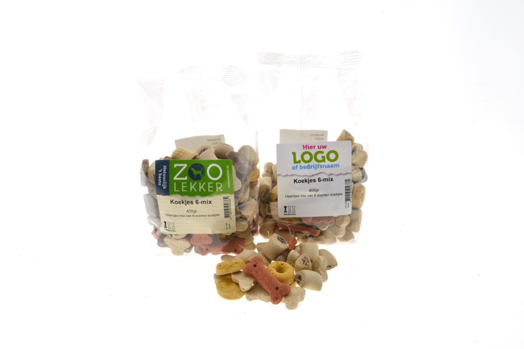Koekjes 6-mix is een mix van 6 verschillende smaken voor een hond. De koekjes 6-mix is een variatie met o.a. onze bekende dierenmix.