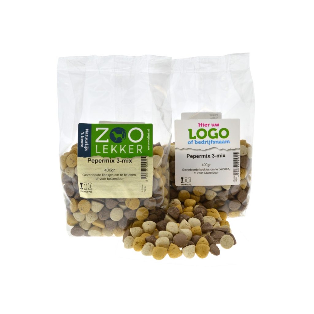 Pepermix 3-Mix is een lekkere en gezonde mix in drie verschillende smaken en kleuren. Een ideale snack voor de hond die van variatie en verrassing houdt. De Pepermix 3-Mix zijn uitermate geschikt als tussendoortje of in stukjes te breken en als beloning te geven.