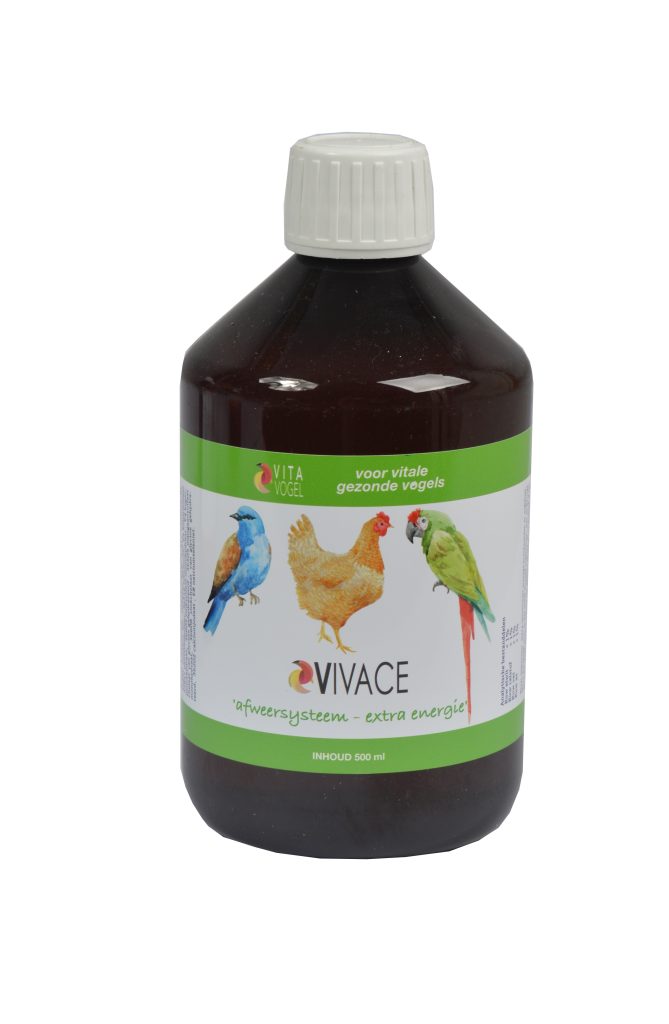 Vivace Energy Boost is een aanvullend supplement voor alle vogelsoorten dat in het water gedoseerd kan worden. Het is een echte energiestoot met extra nutriënten. Vivace bevat vier essentiële aminozuren: methionine, tryptofaan, treonine en lysine, die belangrijk zijn bij de algehele spijsvertering. Daarnaast bevat het de plantextracten ginseng en echinacea purpurea die belangrijk zijn voor het afweersysteem
