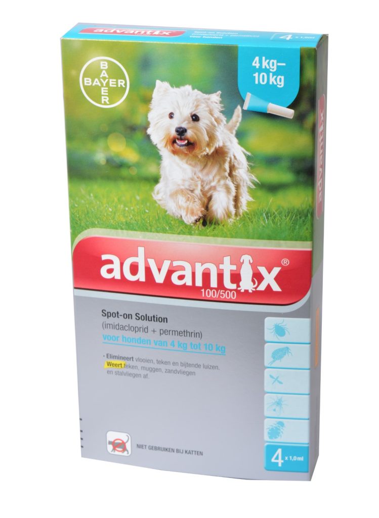 De werkzame stoffen in Advantix zijn permethrine en imidacloprid.