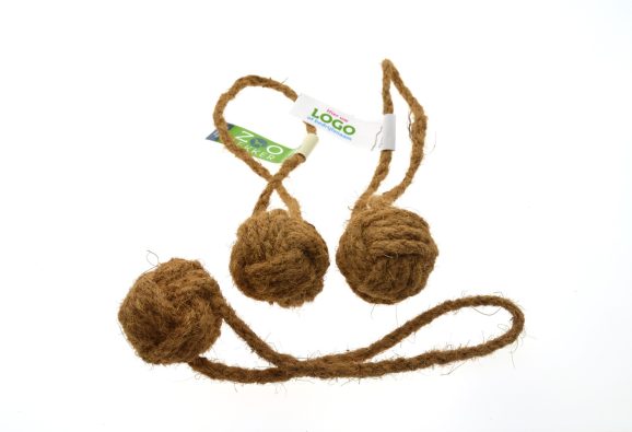 Deze bal met touw gemaakt van kokosvezel is een hondenspeeltje. Kokostouw heeft een ruwe structuur waardoor het fungeert als natuurlijke tandenborstel en flosdraad. De kokosstouwen zijn 100% natuurlijk. Het kauwen op het touw heeft als bijkomend positief effect dat het stressverlagend werkt.