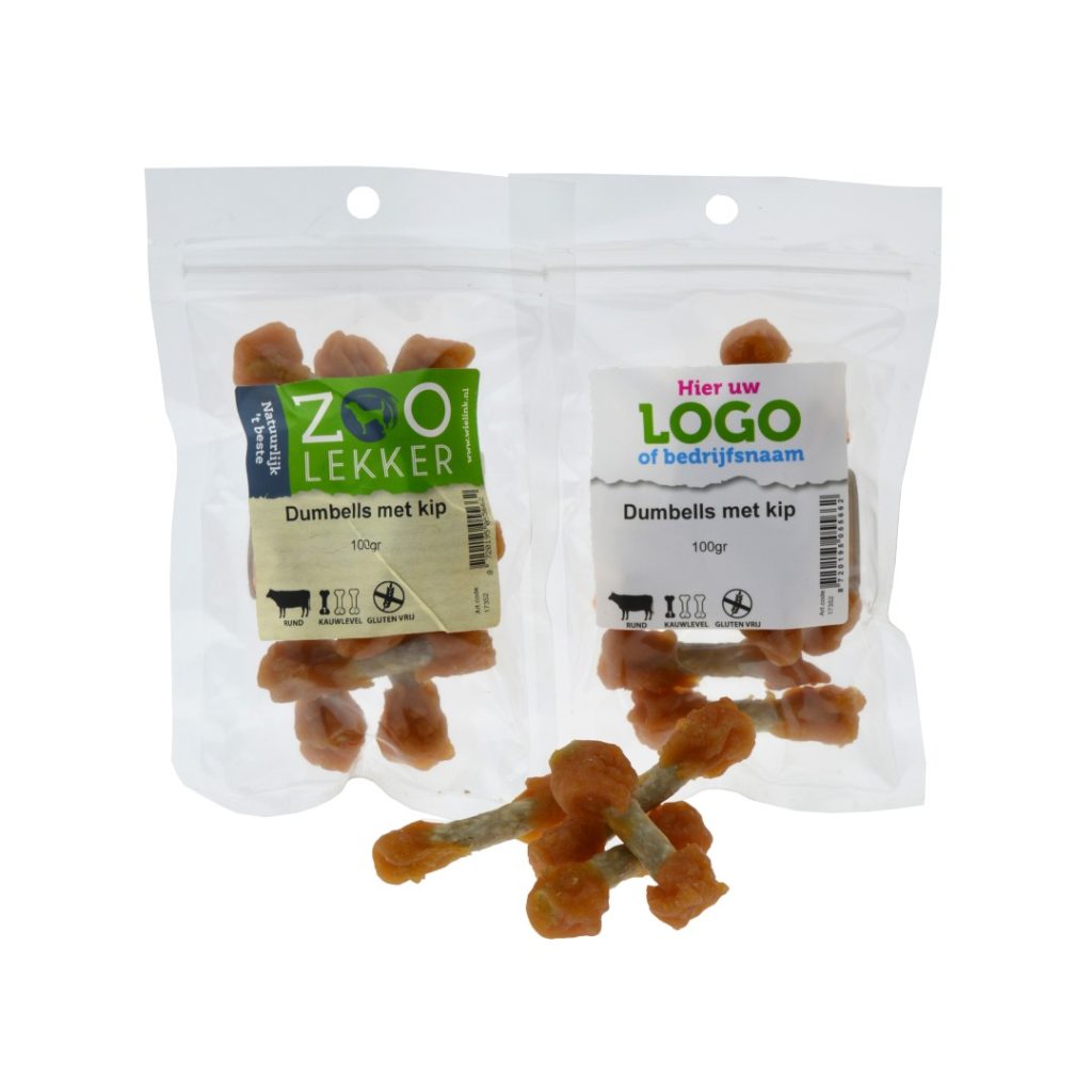 Deze dumbells zijn een overheerlijke snack voor de hond. Ze bestaan uit munchy met gedroogd kippenvlees en zijn geschikt om te geven als tussendoortje of beloning. Verpakt per 100 gram.