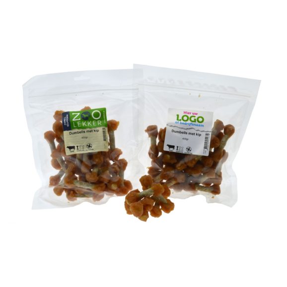 Deze dumbells zijn een overheerlijke snack voor de hond. Ze bestaan uit munchy met gedroogd kippenvlees en zijn geschikt om te geven als tussendoortje of beloning. Verpakt per 400 gram.