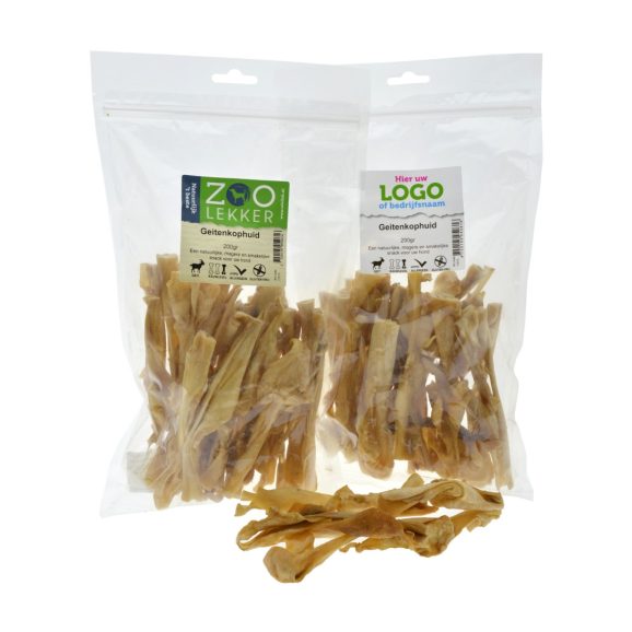 ZooLekker Geitenkophuid is een taaiere snack. De hondensnack is gedroogd en is volledig natuurlijk. De Geitenkophuid is ook geschikt wanneer honden een hypoallergeendieet volgen. Geitenkophuid is glutenvrij en hypoallergeen.
