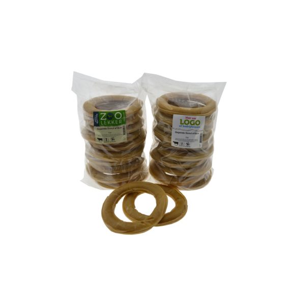Buffelhuid Donut is een heerlijke- en gezonde snack waar een hond op kan kauwen. Deze buffelhuid komt uit Thailand. Kauwen ondersteunt de tandverzorging van een hond, omdat het tandplakt tegengaat. Daarnaast versterkt buffelhuid het tandvlees en zorgt dat de hond zich niet verveelt.