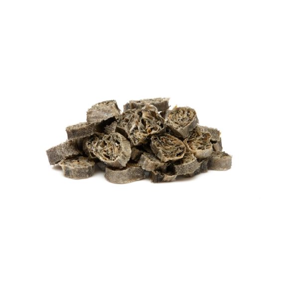 Kabeljauwhapjes Artikelnummer: 17428 EAN: 8720195059370 per 100gr Samenstelling : 100% kabeljauwhuid Analyse: Ruw eiwit 50 %, Ruw vet 12%, Ruwe celstof 0,2%, Ruwe as 4,5%, Vocht 14%.