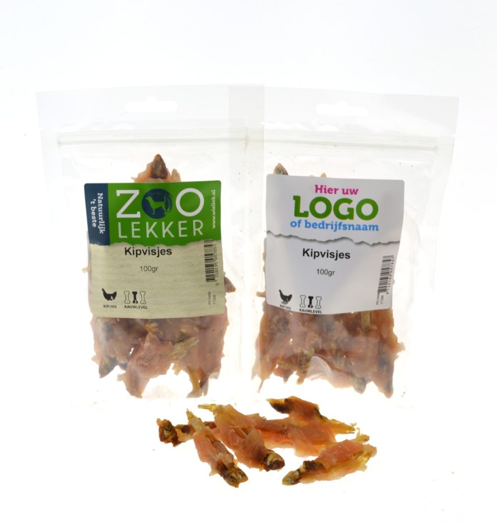 Heerlijke en gezonde snack voor de hond. Gedroogde visjes omwikkeld met kipfilet.