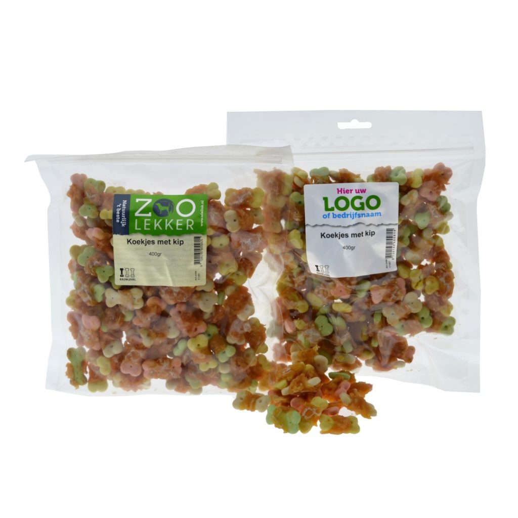 De koekjes met kip zijn gekleurde koekjes, omhuld met gedroogde kip. Deze hondensnack is geschikt als beloning of tussendoortje. De koekjes met kip zijn te verstrekken aan alle hondenrassen.
