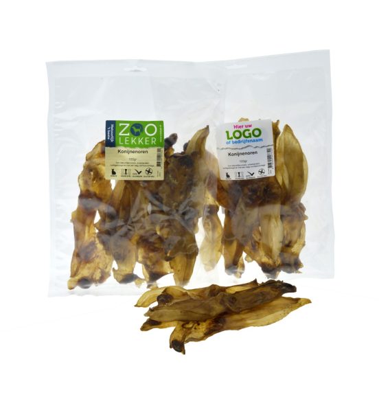 Een gezonde hondensnack. Konijnenoren ZooLekker zijn een gedroogde snack, die ook uitermate geschikt is binnen een hypoallergeen dieet.
