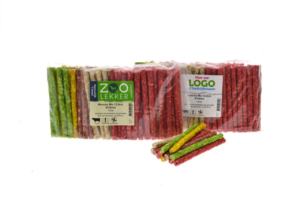 Kauwstaafjes Munchy Mix zijn kauwstaafjes die gemaakt zijn van gemalen runderhuid. Hierdoor zijn de staafjes minder hard dan reguliere runderhuid kauwartikelen. De kauwbewegingen bevorderen de aanmaak van speeksel. In speeksel zitten verschillende afweersystemen tegen ziekteverwerkers.