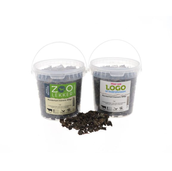 Runderhart trainers 400gr Artikelnummer: 17031 EAN: 8720195058953 per 1st Samenstelling: 100% rund Analytische bestanddelen: Ruw eiwit 73.6%, Ruw vet 10.6%, Vocht 7.3%, Ruwe As 4.1%, Ruwe celstof 3.4% Herkomst: EU runderen
