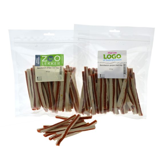 De sandwichstrips met kip zijn een zachte tussendoortje voor een hond. Dankzij het flexibele aspect is de snack ook al te voeren aan jongen honden, of te gebruiken als trainer (nadat het in stukjes is gemaakt).