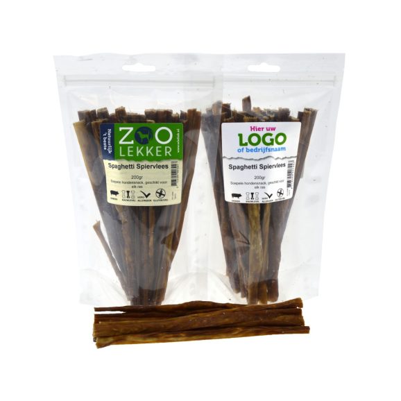 Te gebruiken als hondensnack of als tussendoortje. De Spaghetti Spiervlees is ook beschikbaar in 100 gram.