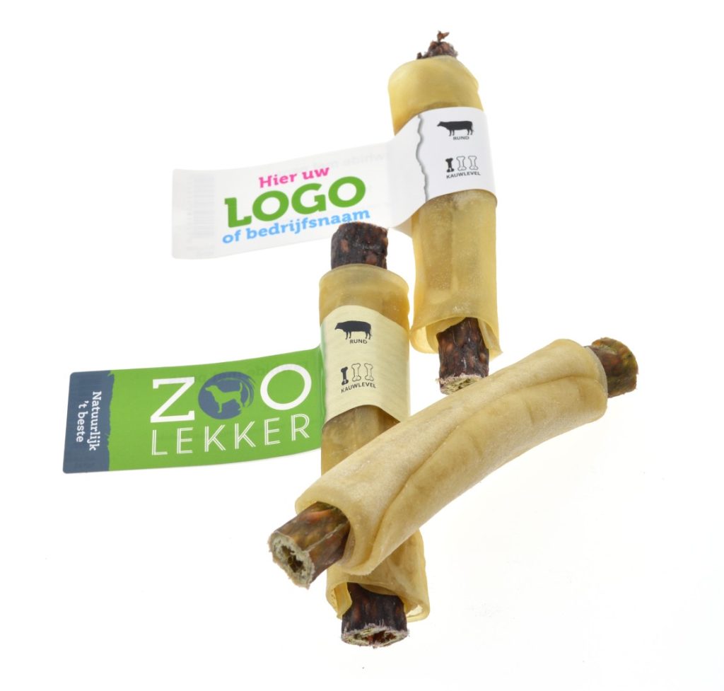 Te verstrekken als hondensnack. De afmeting van de Stick met Rawhide met pens is 17 cm.