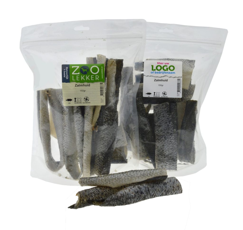 Zalmhuid is rijk aan Omega 3 en 6 vetzuren en is daarom goed voor huid en vacht. De gedroogde zalmhuid bevat een laag vetpercentage. De zalmhuid is gedroogd en 100% natuurlijk. De ZooLekker Zalmhuid is glutenvrij en hypoallergeen.