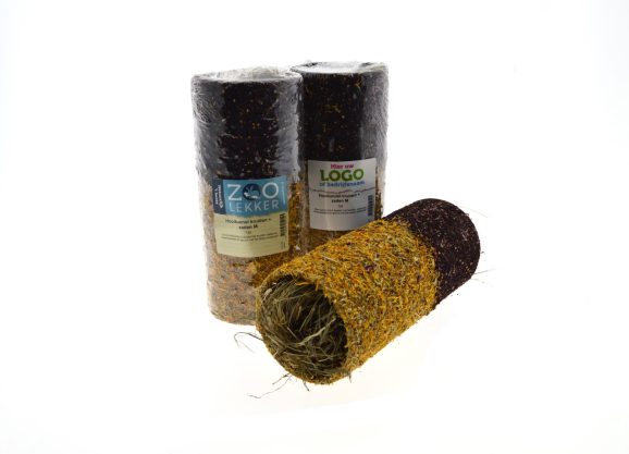 Deze hooitunnel is beplakt met kruiden, zaden en bloemblaadjes en gevuld met het beste weidehooi. Het is een leuke schuilplek voor knaagdieren of (dwerg)konijnen waar ze ook lekker aan kunnen knabbelen!