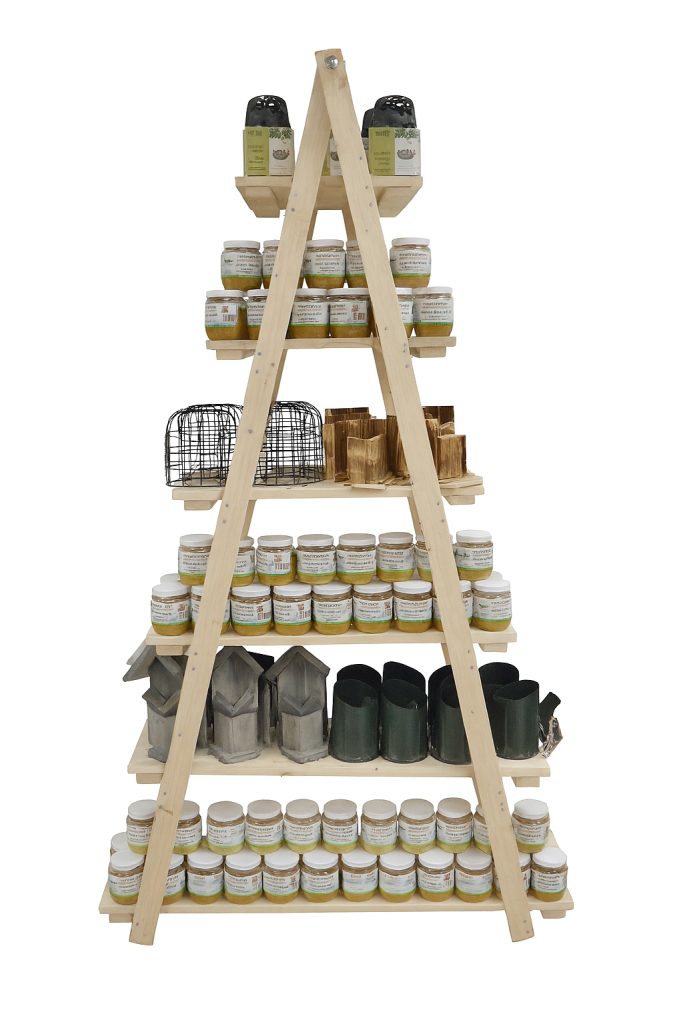Houten display voor in de winkel om diverse Tweetfeed producten op een aantrekkelijke manier te presenteren.