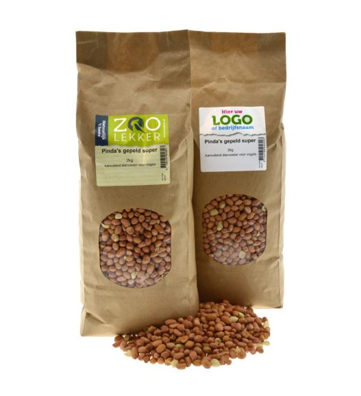 Pinda’s gepeld super Artikelnummer: 60223 EAN: 8720195056003 per 2kg Mooie kleine lightskin pinda’s. Verpakt in een aantrekkelijke paperlook verpakking met venster.